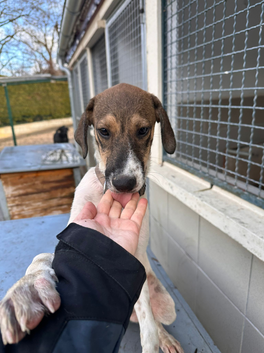 C’est un chiot câlin, joueur et plein d’énergie, toujours partant pour s’amuser et surtout pour « embêter » gentiment les copains. Un vrai bébé chien, curieux de tout et heureux d’être là.
